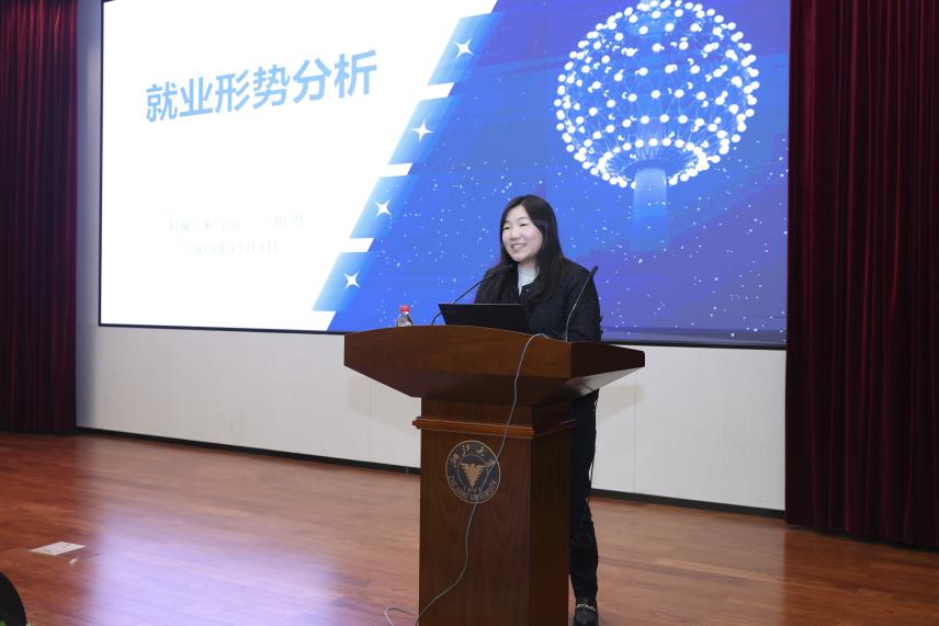 田慧作就业形势分析报告。她聚焦就业形式、就业选择、就业服务以及求职建议四个方面进行了深入浅出的阐述,希望同学们发挥专业优势、关注产业发展,主动融入国家先进制造业大局,努力实现个人理想与国家发展的同频共振。