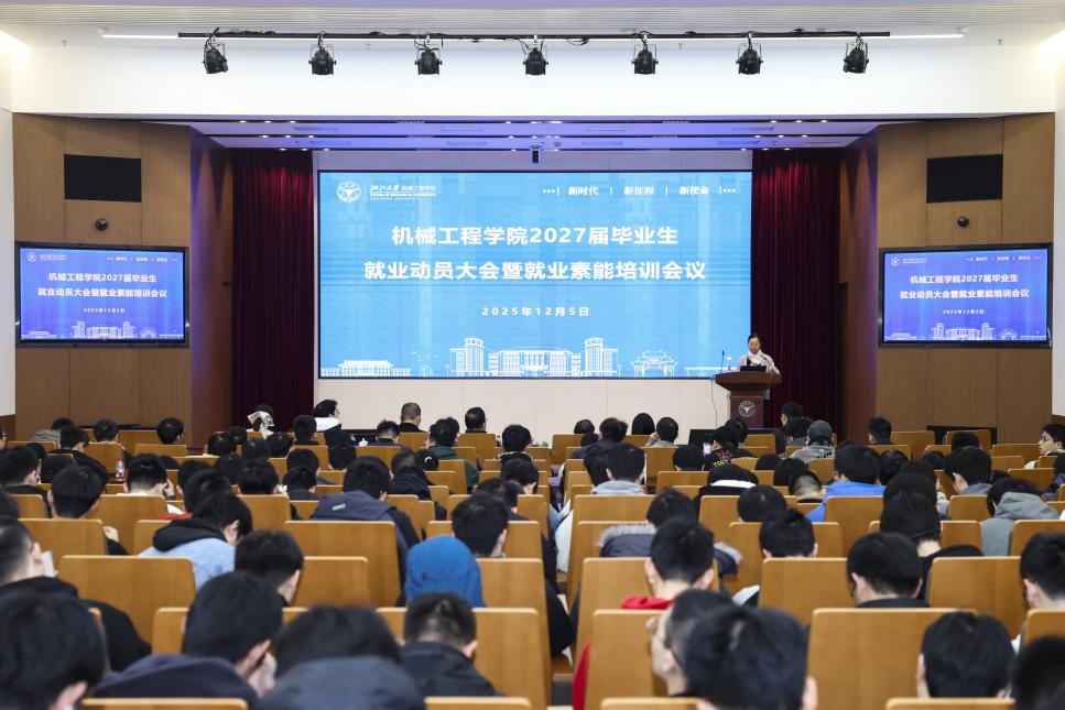 为促进毕业生高质量充分就业,机械工程学院于12月5日举行2027届毕业生就业动员大会暨就业素能培训会。学院校友代表、上海航天技术研究院副院长李昕,浙江大学就业指导与服务中心就业指导部部长应好应邀出席并作辅导报告。机械工程学院党委书记刘振宇,党委副书记、纪委书记田慧,2026届优秀毕业生代表以及全体2027届毕业生参会。会议由学院团委书记金娟霞主持。