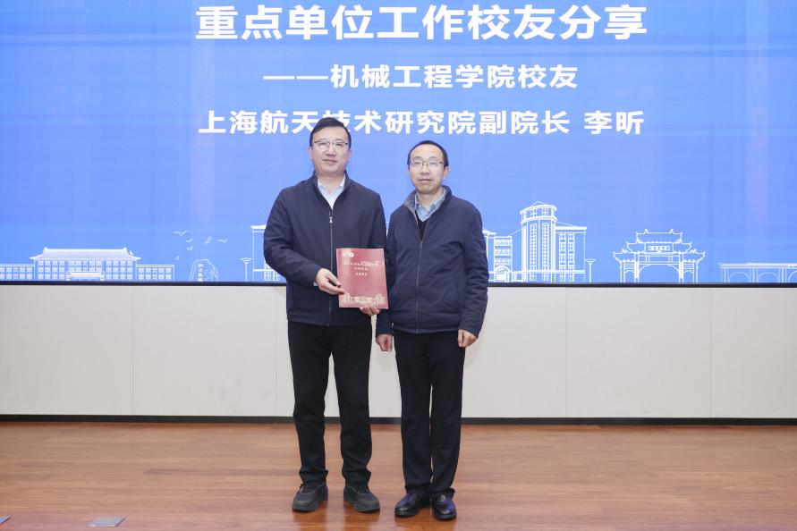 刘振宇代表学院向李昕赠送优秀校友纪念册,既承载着学院对校友的深情厚爱,也见证着机械校友“传帮带”的优良传统。