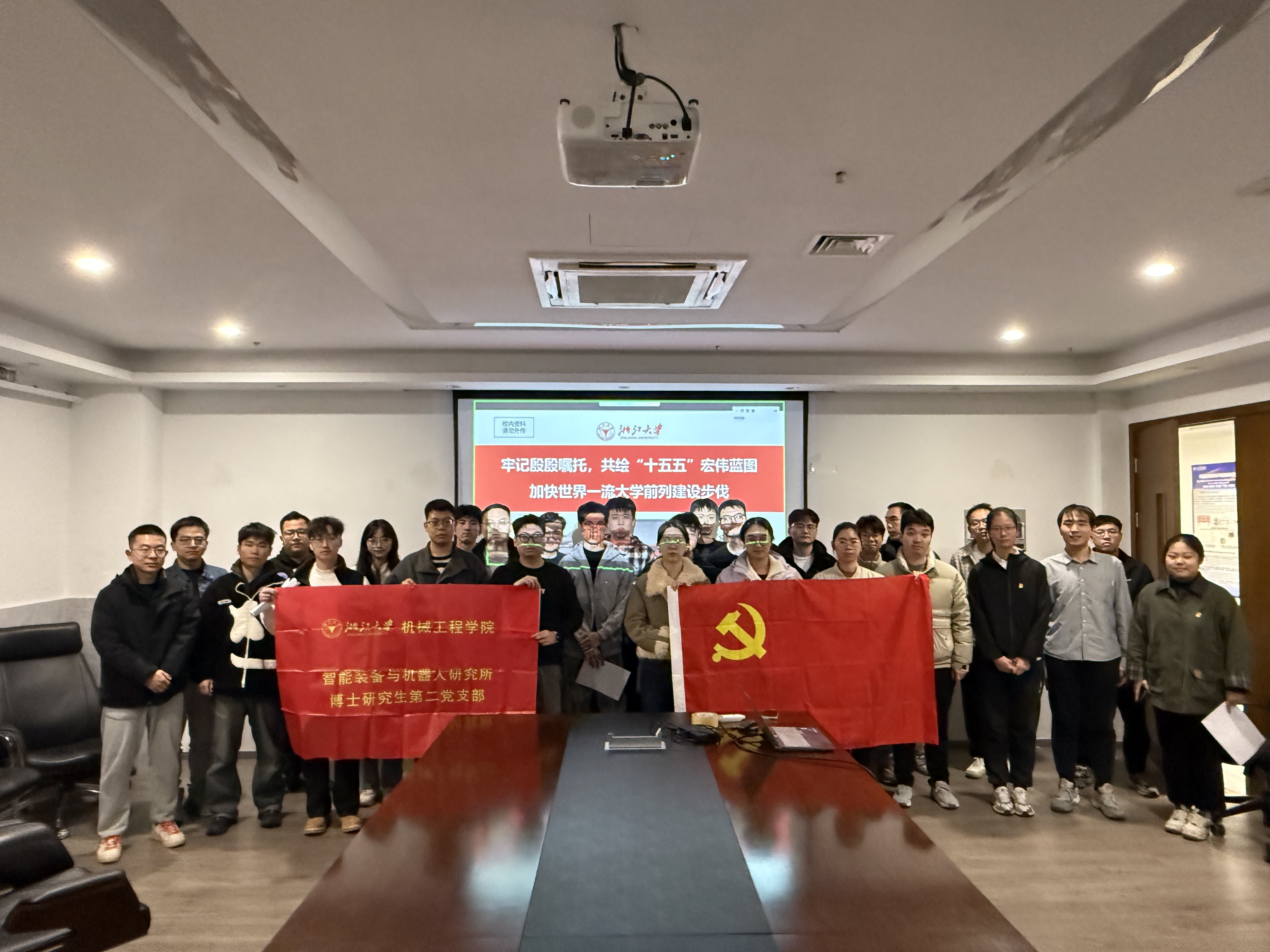 浙江大学机械工程学院智能装备与机器人研究所博士研究生第二党支部于2025年12月3日在紫金港校区开物苑5幢337会议室举行了以“学习贯彻党的二十届四中全会精神”及“学校‘十五五’战略布局与发展规划”为主题的支部大会。本次会议旨在深入领会中央精神,重温习近平总书记对浙大的系列重要指示,并动员全体党员为学校“十五五”规划建言献策,共绘发展蓝图,会议由党支部副书记梁冀凯同志主持 。