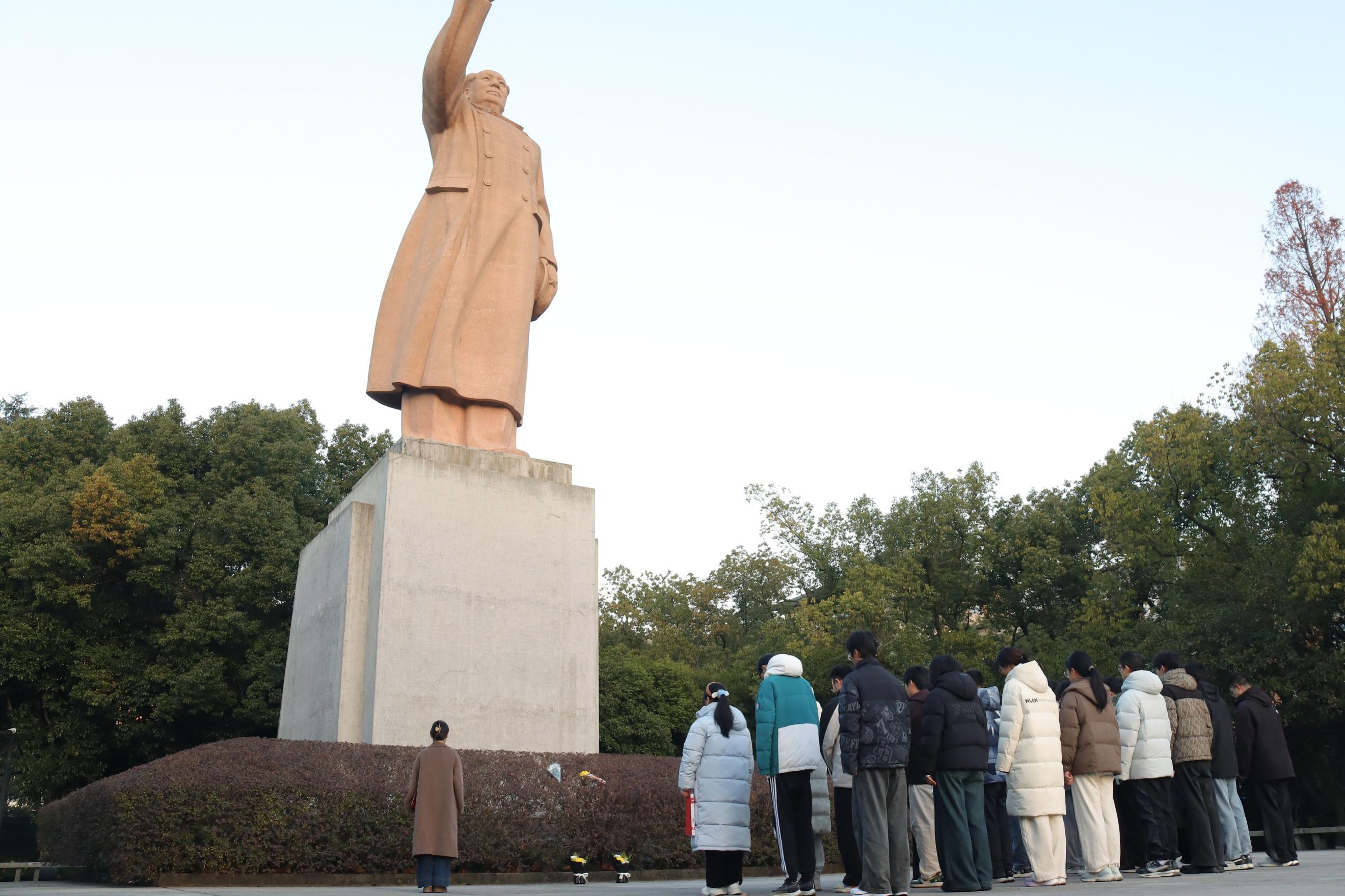 仪式结束后,师生们来到毛主席雕像前,一起缅怀伟大的革命领袖毛泽东同志。学生代表在毛主席雕像前献花、发言,师生们全员默哀一分钟,深切表达对革命先辈先烈的追思与缅怀,用心倾诉对主席的无尽哀思。