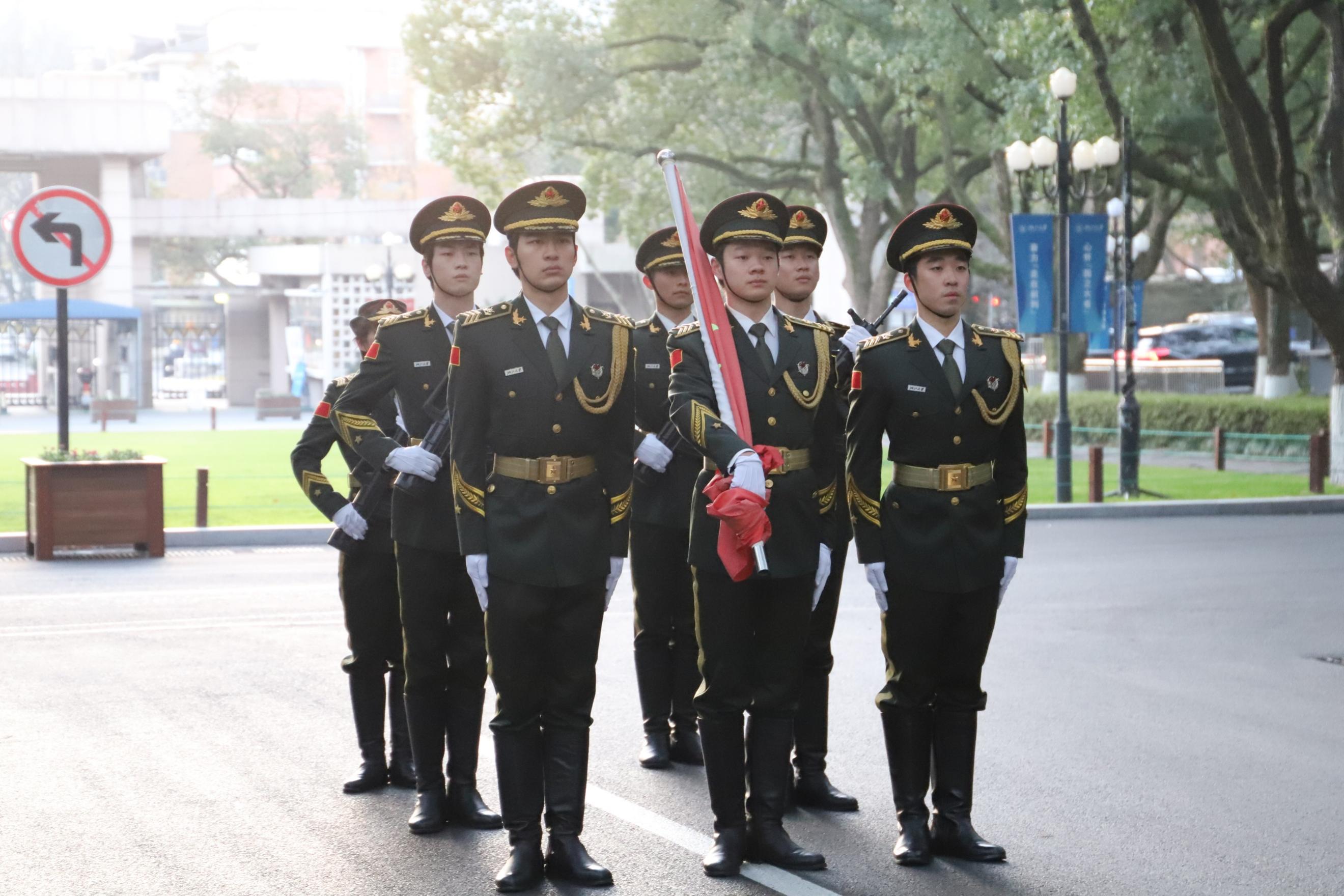 7点整,升旗仪式正式开始。晨光初现,国旗仪仗队的同志们迈着整齐的步伐昂扬走来,庄严肃穆,大气稳重。