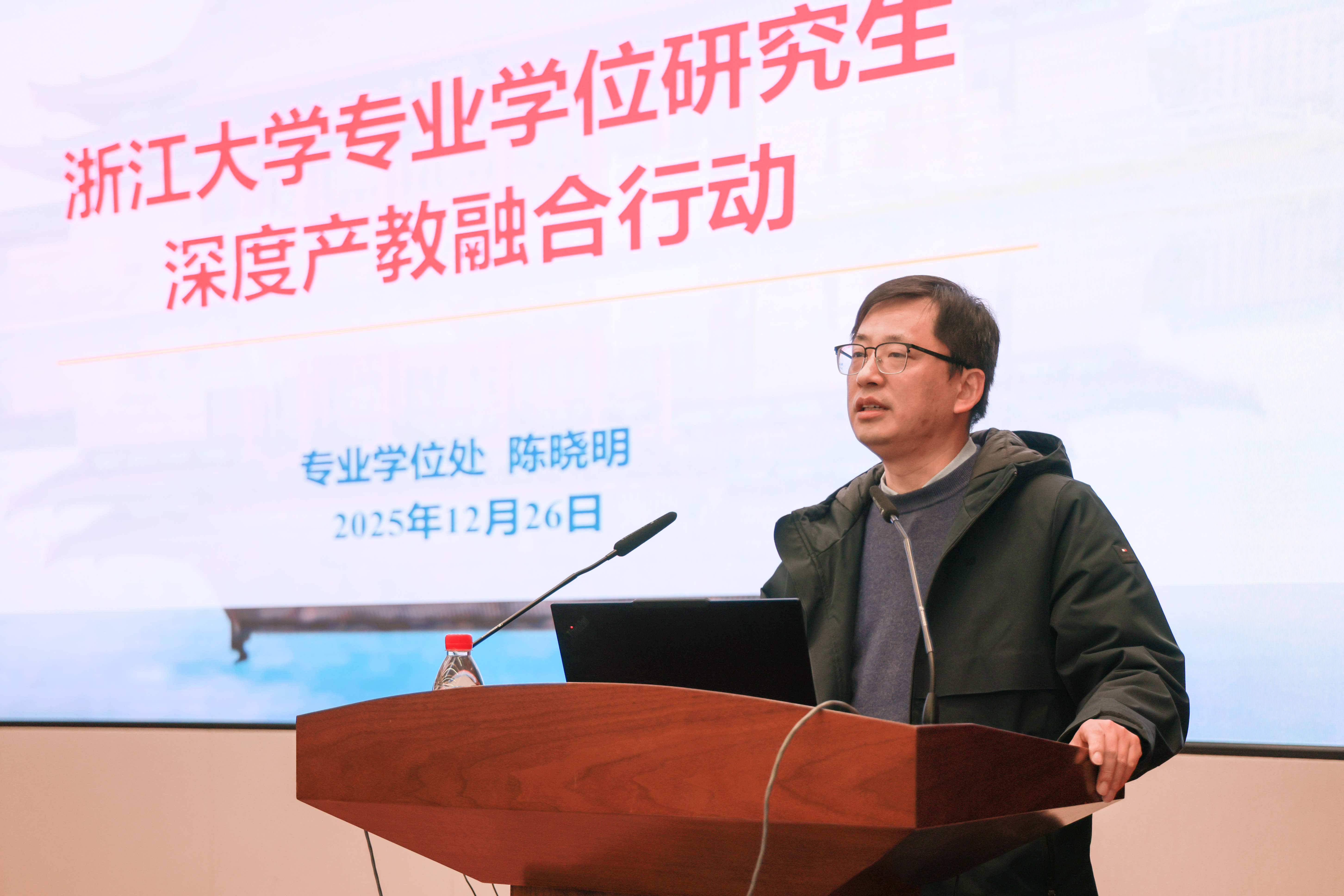 陈晓明作题为《浙江大学专业学位研究生深度产教融合行动》的专题报告,深入探讨产教融合背景下研究生专业学位发展的路径与举措。他指出,面向教育、科技、人才一体化发展的趋势与需求,2025年学校实施新政策,着力突破人才不匹配、培养动力不足、异质化程度不高等制约框架,进一步凸显专业学位实践为主的培养优势。希望各位导师协同发力,共同为培养高层次应用型人才贡献力量。