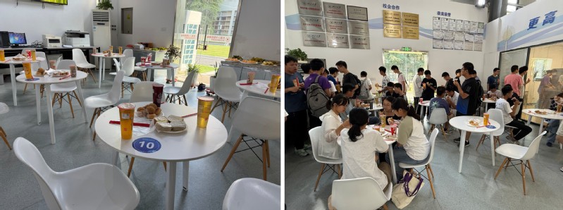 演讲结束后,基地贴心地为同学们准备了茶歇,同学们在轻松愉快的氛围中围绕创业艰辛、学历价值、竞赛技巧等踊跃提问,陈晖结合自身经历一一解答。针对“如何准备创业大赛答辩”的疑问,他强调:“要从真实需求出发,避免纸上谈兵。”对于“机器人研究方向如何选择”的困惑,他建议:“结合个人兴趣与环境机遇,在实践过程中发现真正所爱。”这些接地气的建议让在场同学受益匪浅。
