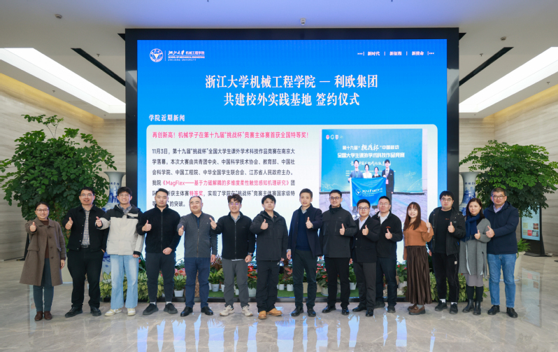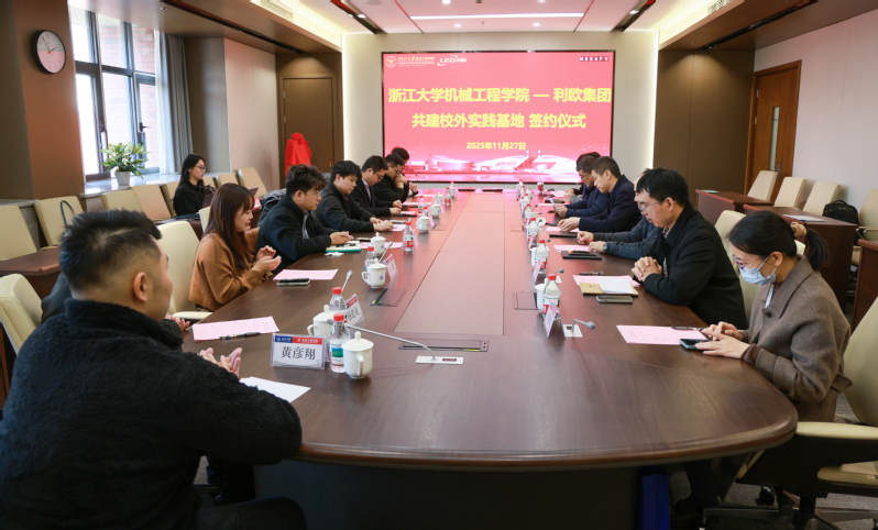 2025年11月27日下午,浙江大学机械工程学院与利欧集团共建校外实践教育基地签约揭牌仪式在紫金港校区开物苑1幢410会议室成功举行。利欧集团一行十人在集团人事负责人张宏宇、制造业技术中心主任吴献带领下参加仪式,机械工程学院陈远流副院长出席了仪式,仪式由实验教学中心主任朱新杰主持。
