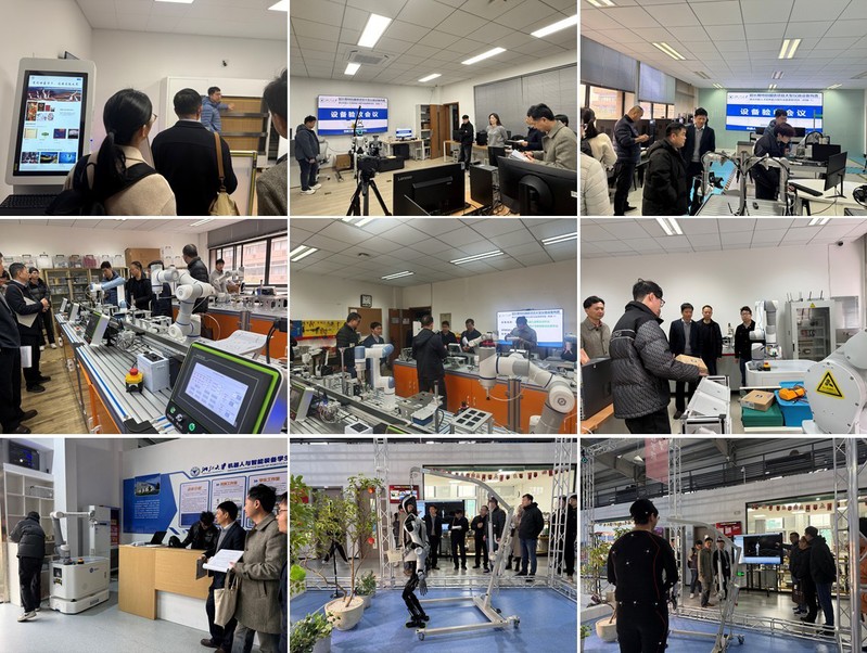 验收组按既定路线,先后对图书自动取放机器人、通用人形机器人、开源智能机器人综合驱控平台、多功能协作机器人通用实训平台、模块化智能机器人与数据驱动应用平台、AI采摘机器人进行实地查验。现场,供应商逐一演示设备功能并解答疑问,验收组严格对照合同、招标参数等资料,核对设备配置与运行情况。相关老师还就设备教学应用规划作了简要说明。